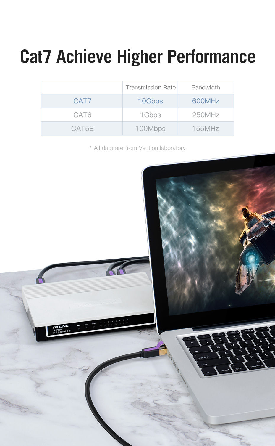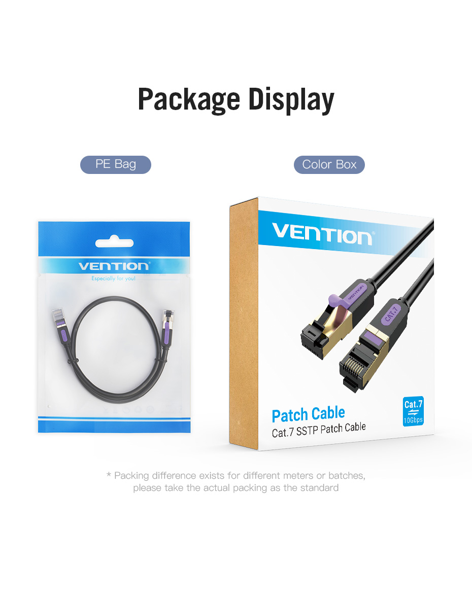 Vention ICDB series CAT7 SFTP Patch Cord is used in network applications such as 1000Base-T Ethernet, and 10Gbps Network and has been designed specifically for Gigabit Ethernet applications (Gigabit over copper) for Smooth Movie Watching without network latency. Enhanced Gaming Experience more stable than Wi-Fi connection. Metal Weaving + Aluminum Foil. Wrap a layer of aluminum foil per two cores to reduce the environmental magnetic field. Metal Braided mesh wrapping to reduce signal interference. Bold Pure Copper wire core. Twisted pairs resist external electromagnetic interference.