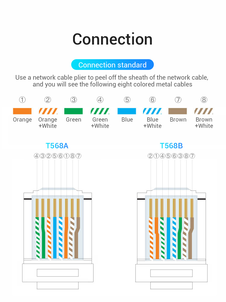 Vention IOD series RJ45 Strain Relief Boots PVC Type. Comes with 10 colors available for more clear identification. Effectively precent dust or water from entering the RJ45 plug which could cause poor contact. Cooperate with the RJ45 plug and network cable to use, OD 6.5mm firm without falling off. Protect the buckle from reversing, and prevent the exposure of the network cable insulation or the network cable breakage, etc. its Flexible and resilient. Different color RJ45 strain relief boots are earier to identify and maintain. Available color: Blue/Light Gray/Purple/Orange/Yellow/Deep Gray/Green/White/Red/Black